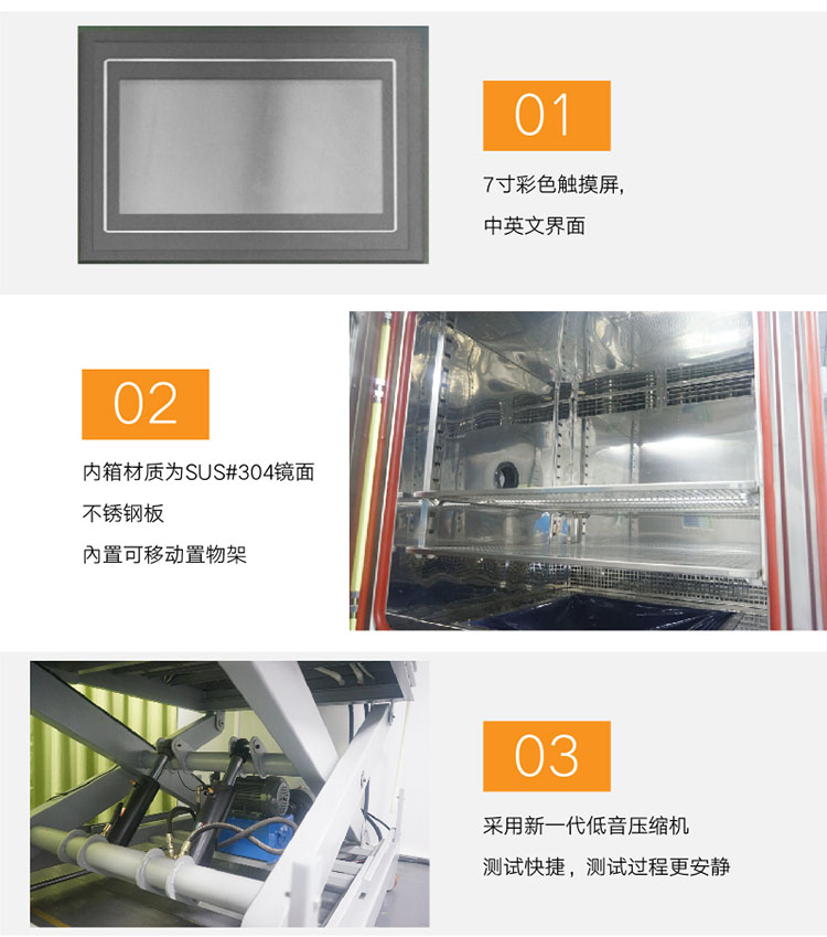 1、內(nèi)箱尺寸(cm):80x70x90 ( HxWxD,可根據(jù)客戶需求更改) 2、外箱尺寸(cm):175x80x132 ( HxWxD,可根據(jù)客戶需求更改) 3、水平臺(tái)面(cm):400x400 (可根據(jù)客戶需求更改) 4、垂直臺(tái)面(cm):400x400(可根據(jù)客戶需求更改) 5、溫度范圍:-70℃~150℃(S), -40℃~150℃(L),-20℃~150℃(R) 6、濕度范圍:20%~98%R.H (10%~98%R.H;5%~98%R.H為特殊選用條件) 7、溫/濕穩(wěn)定度:±0.5℃, ±2% 8、溫/濕均勻度:±1℃, ±2% 9、溫.濕度偏差:≤±2℃/ ±3%RH 10、升溫時(shí)間:約3~4℃/min. 11、降溫時(shí)間:約0.7℃~1℃/min (特殊要求可定做:快溫變型5℃~25℃/min,線性/非線性可調(diào)) 12、內(nèi)箱材質(zhì):SUS 304# 8K鏡面不銹鋼板 13、外箱材質(zhì):上等冷軋鋼板,表面防銹處理后靜電噴塑 14、保溫材料:聚氨酯泡沫+玻璃纖維 15、控制器: A 系統(tǒng):自主研發(fā)溫濕度控制系統(tǒng) B 顯示屏:7英寸,800x480點(diǎn)陣真彩LCD觸摸屏. C 設(shè)定方式:中英文菜單(切換),觸摸屏輸入方式. D 程序容量:250組/12500段/每組32000次循環(huán). E 顯示分辨率:溫度0.1℃,濕度0.1%RH,時(shí)間1S. F 溫度測(cè)量:PT100鉑金電阻. G 濕度測(cè)量:干濕球. H 通訊功能:標(biāo)配:USB,RS-232C接口, 選配:遠(yuǎn)程操控功能. I 記錄功能:采樣周期3S到60S任意設(shè)定. 16、冷凍系統(tǒng): A 系統(tǒng):法國(泰康)全封閉壓縮機(jī)組或德國(比澤爾)半封閉式壓縮機(jī) B 制冷劑:環(huán)保冷媒: 單級(jí)上等R-404A, 復(fù)疊二級(jí)R-23 C 冷卻:風(fēng)冷或水冷 17、供水系統(tǒng): A 供水方式:磁力泵供水 B 儲(chǔ)水容量:30L C 試驗(yàn)用水:去離子水或蒸餾水 18、加熱系統(tǒng):不銹綱鰭片式加熱管加熱空氣方式 19、加濕系統(tǒng):不銹鋼護(hù)套式電熱蒸氣發(fā)生方式.(特點(diǎn):密封性能極好,有效防止蒸汽流失) 20、保護(hù)裝置:壓縮機(jī)超壓、過載、過熱、過流保護(hù);超溫保護(hù);漏電保護(hù);風(fēng)機(jī)過載保護(hù);相序保護(hù);加濕干燒保護(hù);水箱缺水警報(bào)系統(tǒng) 21、標(biāo)準(zhǔn)配置:視窗;視窗觀測(cè)燈;測(cè)試孔(¢50x1只); 試料架(2組); 超溫保護(hù)器; 時(shí)間信號(hào)接口 22、選配件:有紙或無紙記錄儀;特殊規(guī)格測(cè)試孔;特殊規(guī)格樣品架;10寸液晶觸摸屏 23、電源:AC3¢5W380V50HZ